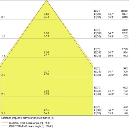 The number of lumens (lm) is the light output of a light source. The higher the number of lumens, the more light the light source emits. The wattage and the number of lumens are not connected to each other. An LED lamp with a low wattage can have a higher number of lumens than a conventional lamp with a high wattage.