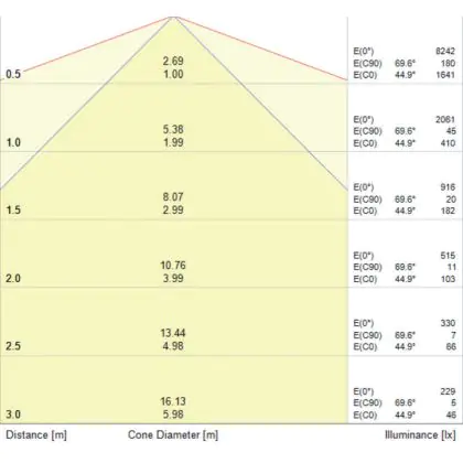 A beam angle indicates the angle of the light beam coming from a light source. The smaller the radiation angle in degrees (D), the narrower the beam angle.