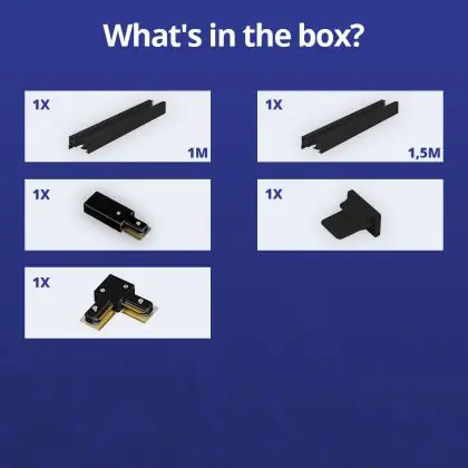 Rail Set 1-Phase L 1 x 1,5 Meter Black | incl. End Cap, Power Connector and L -Connector